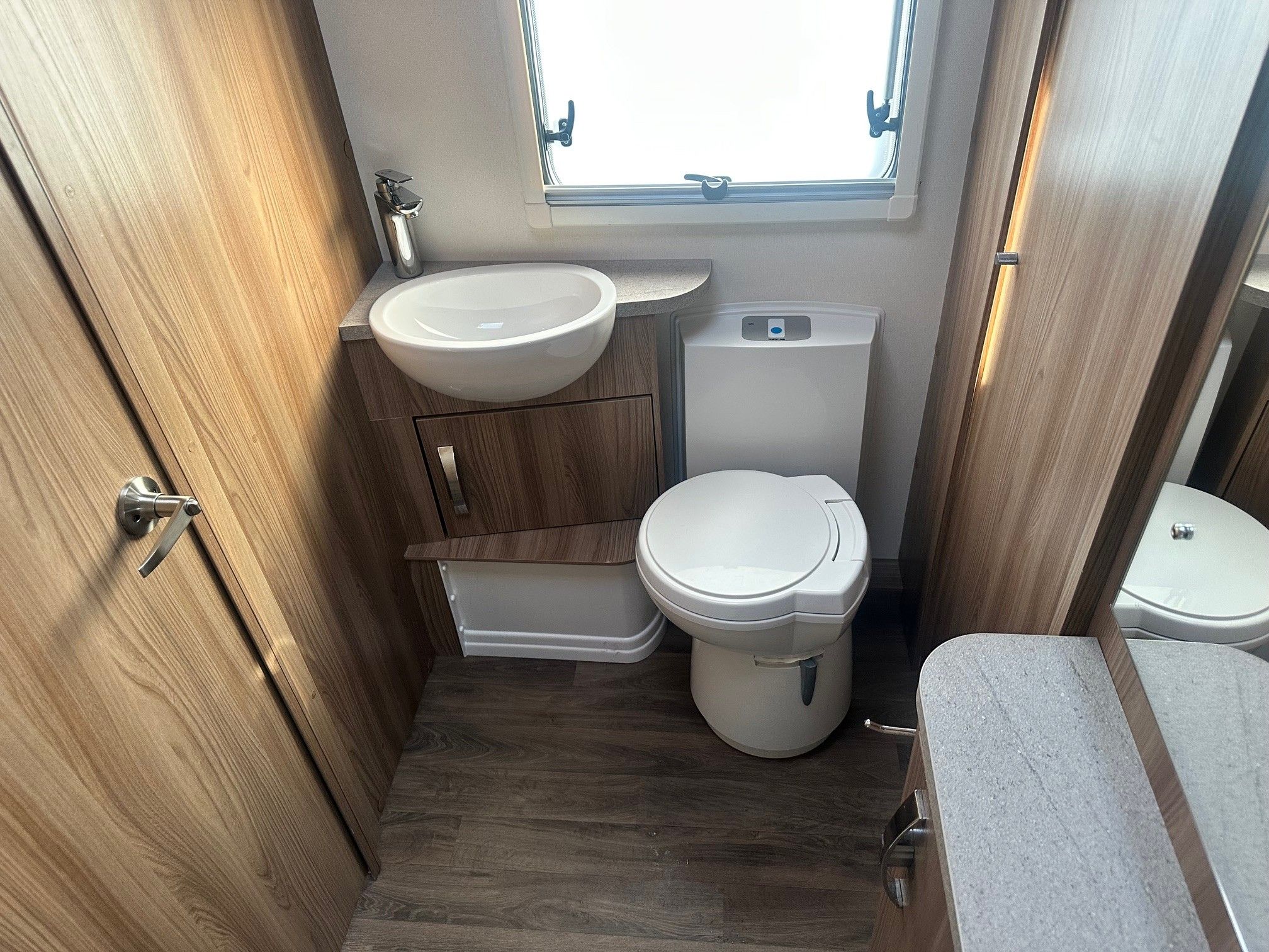 A stunning rear island bed caravan with lots of under bed storage with a centre washroom including separate shower that can be used from either end of the caravan.